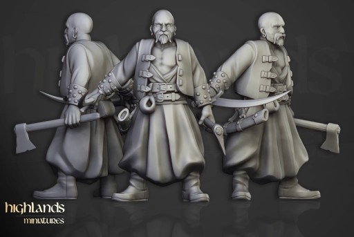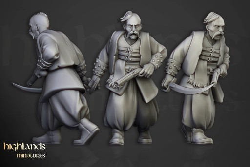 Oferujemy zestaw dziesięciu figurek Harbour Cossacks autorstwa Highland Miniatures, wydrukowany na drukarce żywicznej.