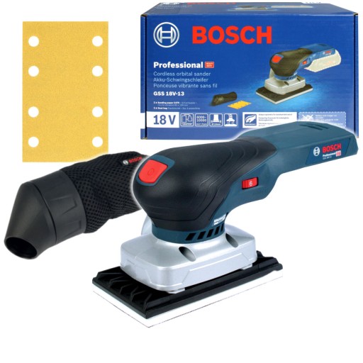 Szlifierka oscylacyjna GSS 18V-13 firmy BOSCH przeznaczona do szybkiego i precyzyjnego szlifowania oraz polerowania różnego rodzaju materiałów: z drewna, metalu, tworzyw sztucznych, kamienia czy ceramiki, pokrytych farbą, lakierem, czy szpachlą.