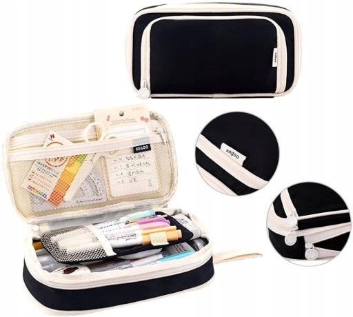 ✅ Piórnik posiada specjalną konstrukcję z trzema przegrodami, dzięki czemu różne przedmioty są uporządkowane oddzielnie