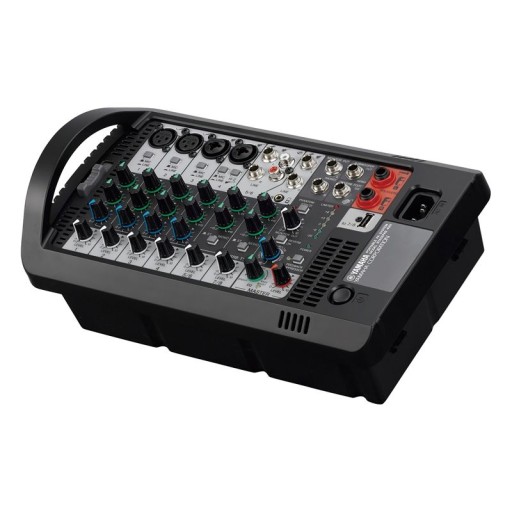 680W przenośny system PA z 10-kanałowym mikserem z końcówką mocy, dwoma 10" głośnikami, możliwością połączeń z iPod em/iPhone em, cyfrowymi efektami reverb SPX, wbudowanym eliminatorem sprzężeń oraz wszechstronnym korektorem.