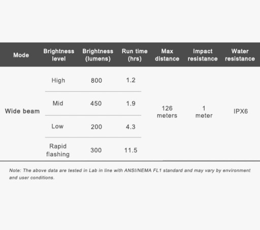 Trzy stałe poziomy jasności z dużą liczbą lumenów lub długim czasem pracy dla różnych potrzeb podczas jazdy. Widoczny, szybki tryb migania podczas jazdy w dzień w celu zwiększenia widoczności.