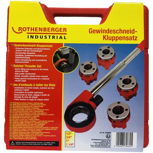 ROTHENBERGER Industrial Super Cut - 7-częściowy zestaw gwintów do gwintowania - z 4 głowicami tnącymi 070669E