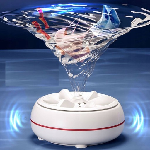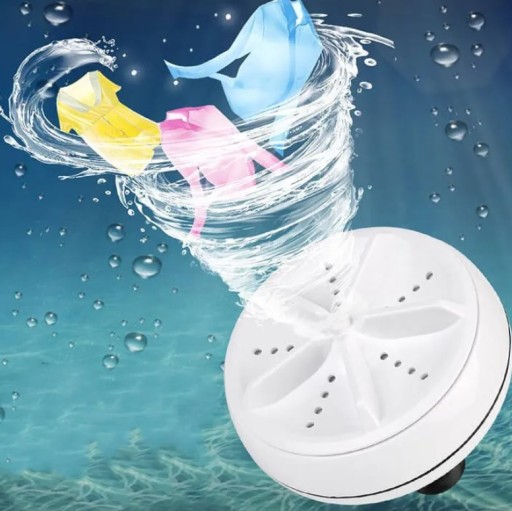 - Mini prałka jest wyposażona w specjalną turbinę, która umożliwia wirowanie wody w obie strony. Produkt skutecznie pierze ubrania, pozbywa się plam oraz odświeża zapach.