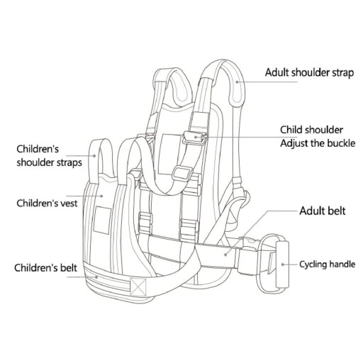 OCHRONA I BEZPIECZEŃSTWO: Podczas jazdy kamizelka rodzica i dziecka są połączone w czterech punktach, a 360 "opasuje i mocuje, co jest mocniejsze i bezpieczniejsze. Uchwyt bezpieczeństwa wykonany jest z antypoślizgowego materiału piankowego, zwiększa tarcie między rączką dziecka ,Lepiej utrzymuj równowagę dziecka podczas nagłego hamowania, zwiększa bezpieczeństwo dziecka. Odpowiedni dla dzieci w wieku 2-12 i poniżej 30 kg.