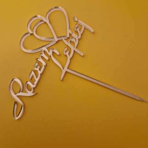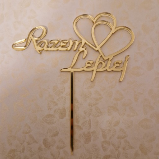 Topper na tort weselny "Razem Lepiej" + symbol dwa serca - złote lustro