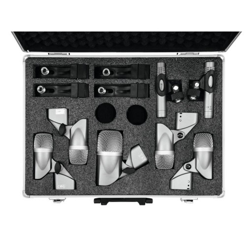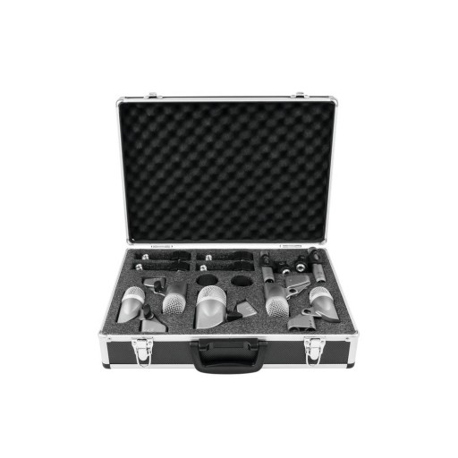 7-częściowy zestaw mikrofonów do zestawów perkusyjnych. Wytrzymałe mikrofony do zastosowań studyjnych i scenicznych. Wszystkie mikrofony z uchwytem do statywu z gwintem 1,5 cm/5/8" i adapterem 1 cm/3/8". W zestawie Flightcase wyściełany pianką i futerkiem.