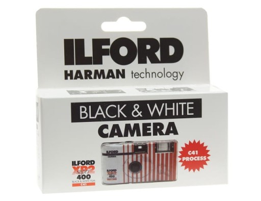 ILFORD Black&White Camera XP2 Super to jednorazowy aparat fotograficzny, z filmem czarno-białym ILFORD XP2400-27 klatkowym o czułości ISO 400 i lampą błyskową.