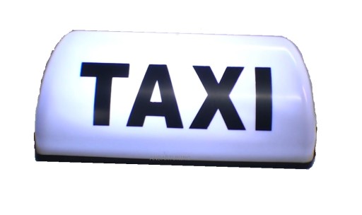 - sygnalizator TAXI w kolorze białym z czarnym napisem po obu stronach