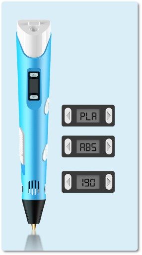 Ważną kwestią jest dopasowanie temperatury dyszy długopisu 3D do rodzaju materiału używanego do pracy. Umożliwi to wyświetlacz LCD, na którym należy zaakceptować wybrany materiał, a następnie ustawić wymaganą dla niego temperaturę.