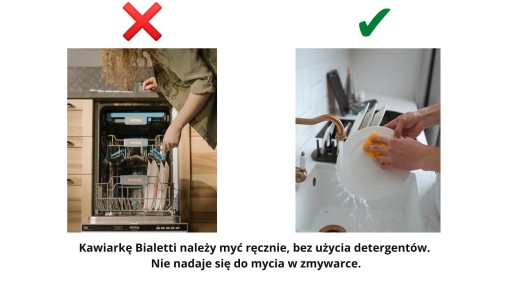 Kawiarkę należy myć ręcznie, bez użycia detergentów. Nie nadaje się do mycia w zmywarce.