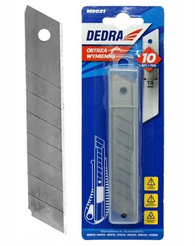 Zestaw 10 szt. ostrzy wymiennych o szerokości 18mm. Ostrza charakteryzują się bardzo duża ostrością oraz trwałością. Ostrza w celu łatwiejszego i bezpieczniejszego przechowywania i transportu spakowane zostały w praktyczne pudełko z tworzywa sztucznego.