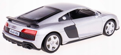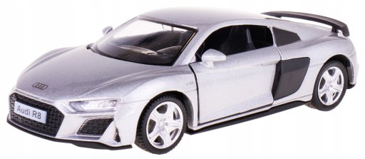 Audi R8 2019 - Silver w skali 1:32 Metalowy pojazd z elementami plastikowymi, dzięki zastosowaniu materiałów wysokiej jakości zapewnia niesamowite odczucia. Nadwozie i lakier wykonane z najwyższą dokładnością i starannością. Przez otwierane drzwi każdy może zajrzeć do wnętrza samochodu i poczuć się jak w prawdziwym supersamochodzie. Miniaturowe spełnienie marzeń dzięki licencjonowanym modelom aut. Model zapewni rozrywkę zarówno dla dzieci, jak i starszych kolekcjonerów przez długi czas. Produkt posiada Europejski Certyfikat Jakości i Bezpieczeństwa CE oraz inne certyfikaty obowiązujące na terenie Unii Europejskiej. Przeznaczony dla dzieci powyżej 3 roku życia. Wszystkie pojazdy posiadają oficjalną licencję producenta. Zabawka sprzedawana w pojedynczym opakowaniu z okienkiem.