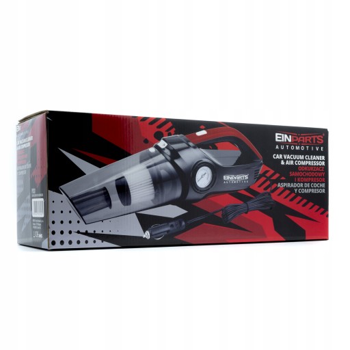 Odkurzacz samochodowy marki EinParts Automotive o mocy 120W jest przeznaczony do czyszczenia wnętrza samochodu. Dołączone do zestawu akcesoria ułatwią kompleksowe odkurzenie auta, także trudno dostępnych miejsc i zakamarków.