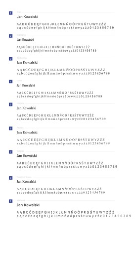 Dostępne rodzaje czcionek.