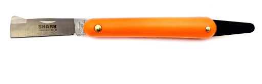 Nóż ogrodniczy do okulizacji , ostrze wykonane ze standardowego stopu stali, wyposażony w przydatną „piętkę i kostkę” do podważania. Rączka wykonana z trwałego tworzywa. Narzędzie składane.