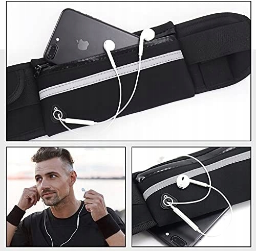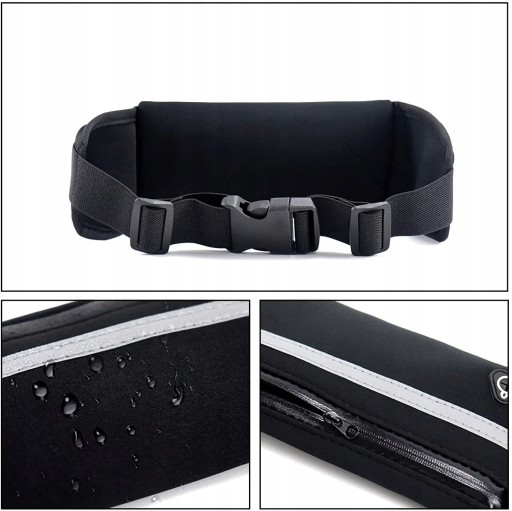 Wodoodporna saszetka ma trzy kieszenie. Możesz zabrać telefon, słuchawki, klucze, pieniądze czy inne potrzebne rzeczy. Główna kieszeń zamykana jest na zamek błyskawiczny, a boczne na rzepy.