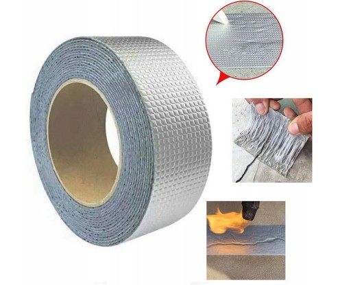 Taśma butylowa uszczelniająca to taśma aluminiowa samoprzylepna ze specjalną warstwą przylepną kleju do naprawy uszkodzeń, pęknięć powierzchni, naprawy rur.