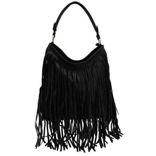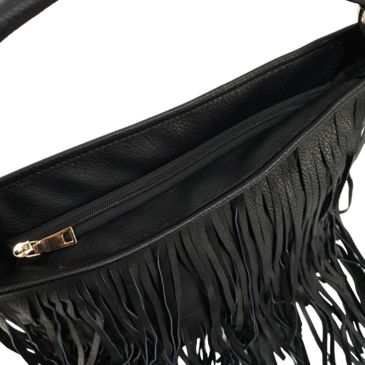 Piękny model torebki, uszyty z wysokiej jakości skóry ekologicznej z przodu efektownie ozdobiony modnymi frędzlami.