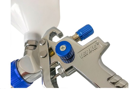 Wysokiej jakości niskociśnieniowe pistolety natryskowe HVLP marki Verke cechują się profesjonalną konstrukcją oraz dużą precyzją w nanoszeniu farby. Znakomite rozpylenie, szybkość w pracy, ergonomia oraz najwyższa jakość wykonania to ich najważniejsze atuty. Przeznaczone są do zastosowań różnego rodzaju działalnościach i dziedzinach. Wysokiej jakości dysza i iglica ze stali nierdzewnej oraz możliwość trzech regulacji zapewniają pełną kontrole nad pracą. Pistolety Verke charakteryzują się ergonomiczną i lekką rękojeścią, pozwalającą na długą i komfortową pracę.