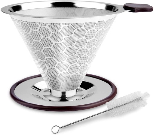 ☕️Podstawa i filtr wykonane są z wysokiej jakości stali nierdzewnej 304 i mocno ze sobą połączone, trwałe, starannie solidne wykonanie. W zestawie z małą szczotką, łatwą do czyszczenia, można myć w zmywarce.