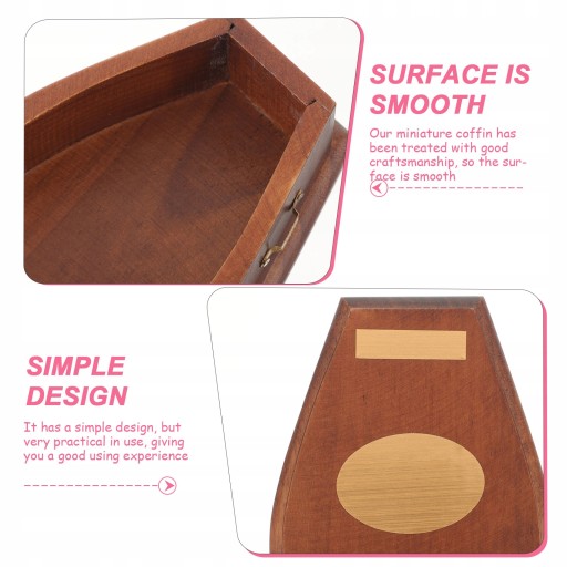 Nasza miniaturowa trumna została wykonana z dobrym kunsztem, dzięki czemu powierzchnia jest gładka i bezpieczna w użyciu.