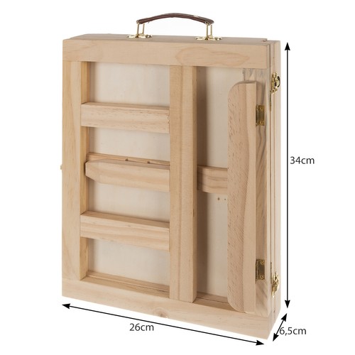 - 2 W 1 SZTALUGA ORAZ PRAKTYCZNA WALIZKA – sztaluga jest składana w walizkę. Walizka posiada wytrzymałą, wygodną rączkę, dzięki czemu transportowanie jest proste i komfortowe. Posiada szufladkę na akcesoria, która jest zamykana na metalowe, mocne klamry gwarantujące, że walizka będzie szczelnie zamknięta i nic się z niej nie wysypie ani niczego nie zgubimy.