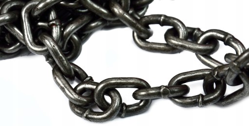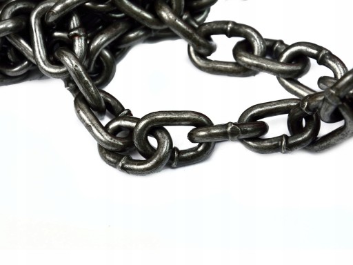 Łańcuch wykonany z wysokiej jakości stali. Ogniwa łączone metodą zgrzewania oporowo-iskrowego, co gwarantuje odpowiednia jakość i wytrzymałość zgrzeiny. Ogniwa są również kalibrowane dla zapewnienia odpowiedniego kształtu i wymiarów każdego z nich, oraz sprawdzenia ich wytrzymałości.