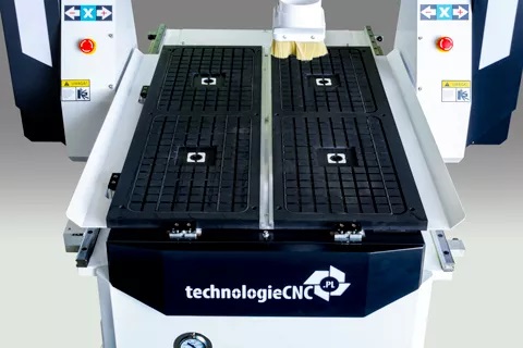 Ploter frezujący CNC serii INDUSTRY 2.0 o powierzchni roboczej 600x900mm i prześwicie w osi Z równym 300mm wyposażony jest w elektrowrzeciono o mocy 6kW i 24000 obr./min. na ceramicznym ułożyskowaniu. Stół roboczy maszyny wykonany jest w technologii hybrydowej - posiada sekcje i podsekcje próżniowe umożliwiające automatyczne, bezinwazyjne mocowanie obrabianego materiału a także sloty T-Rowkowe umożliwiające mocowanie ręczne.