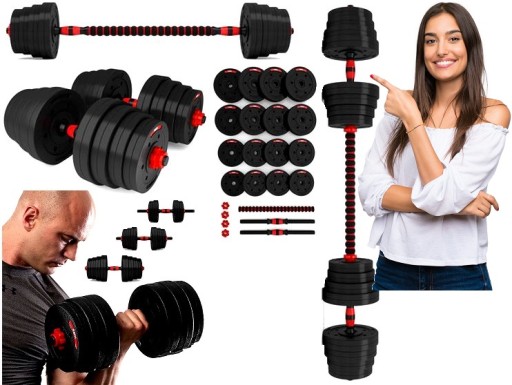 ✨W skład zestawu wchodzą dwa gryfy, cztery zaciski, łączenie dwóch gryfów i łącznie 16 talerzy obciążeniowych.✨