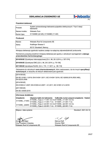 Webasto Pure ll 11kW 4,5m Stacja ładowania wallbox