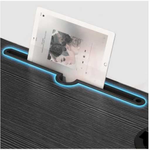 Wyposażony w profilowane zagłębienie na tablet lub telefon. Można też przeciągnąć ładowarkę i ładować te urządzenia jednocześnie z nich korzystając.