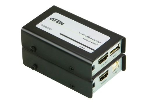 Przedłużacz VE803 HDMI-USB przedłuża sygnał HDMI ze źródła sygnału HDMI na odległość do 60 m przy użyciu dwóch konwencjonalnych kabli kat. 5e. Może z łatwością przesyłać sygnały 1080i na odległość do 60 metrów i 1080p na odległość do 40 metrów.