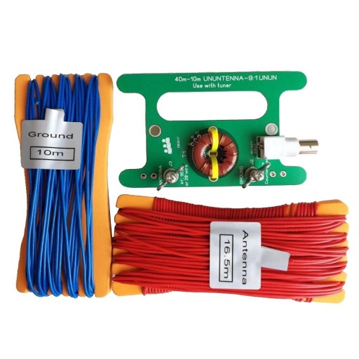 Wykorzystuje integralny balun napięciowy 9:1, który dopasowuje niezbalansowane wejście o impedancji 50 omów do niesymetrycznego długiego przewodu o impedancji 450 omów.