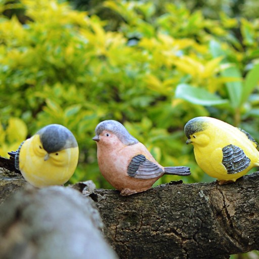 Realistyczne: ręcznie malowane żywymi kolorami i grawerowaną teksturą piór, sprawiają, że są uroczym zestawem realistycznych dekoracji ptaków