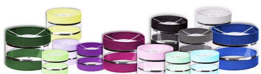 Lampy z serii Vire Silver posiadają okrągłe abażury z bezbarwnym pasem w środku oraz są wykończone srebrną tasiemką. Lampy przepuszczają dużo więcej światła niż tradycyjny abażur.