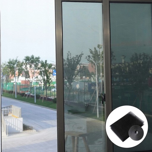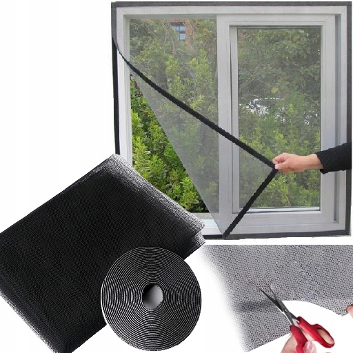 Instrukcja montażu: Z taśmy mocującej usunąć papierowy pasek, przykleić taśmę po oczyszczonej wewnętrznej stronie ramy okiennej. Zamontować siatkę na taśmie, a nadmiar materiału odciąć.