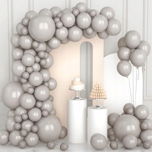 Zestaw składa się tylko z balonów i taśmy, nie ma przedstawionych na zdjęciach dodatkowych elementów (kolorowych motyli czy napisów).
