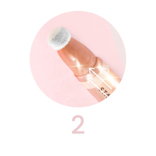 Przygotowanie i stosowanie: Przekręć aplikator do pozycji ON. Nanieś produkt za pomocą jednego pociągniecia lub ruchem stemplującym i rozblenduj gąbeczką. Następnie przekręć aplikator do pozycji OFF i zamknij.