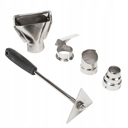 Zestaw zawiera 4 końcówki do opalarki oraz skrobak z plastikową rękojeścią.