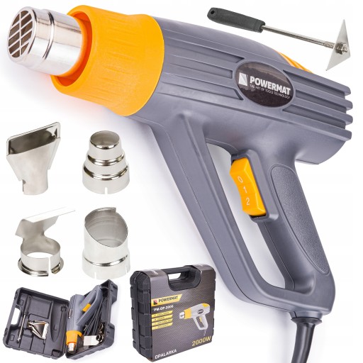 Opalarka elektryczna POWERMAT PM-OP-2000 wyposażona w grzałkę o mocy 2000W umożliwia wytworzenie temperatury na poziomie 600℃. Opalarka doskonale sprawdzi się podczas usuwania starej farby, różnego rodzaju olein, idealna do pracy z materiałami termokurczliwymi oraz różnego rodzaju plastikami. Może być używana do rozpalania pieca bądź grilla bez konieczności stosowania rozpałki.