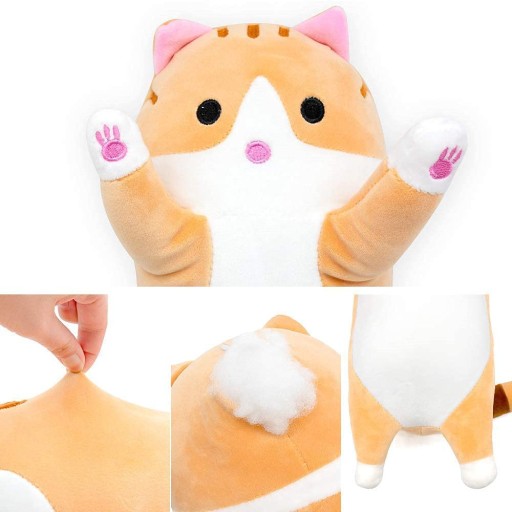 Maskotka podłużnego kotka, który może służyć nie tylko jako ulubiona przytulanka, ale i poręczny zagłówek. Pluszak wykonany jest z bardzo miękkiego i przyjemnego w dotyku materiału.