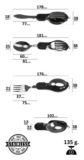 Niewielkie wymiary oraz mała waga sprawiają, że jest to idealne narzędzie na biwak, w podróż, na ryby, do lasu itp.