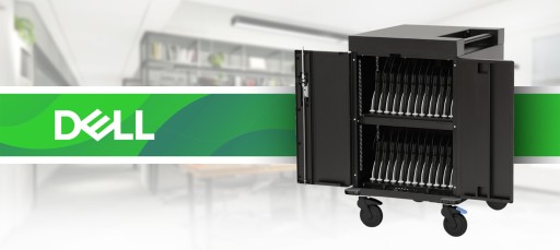 Wózek do ładowania firmy Dell umożliwia bezpieczne przechowywanie przenośnych urządzeń komputerowych, ich łatwe przewożenie.