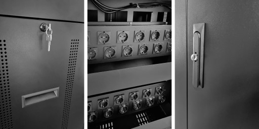 Po godzinach pracy wózek stanowi zamykany schowek na 24 urządzeń, które można ładować.