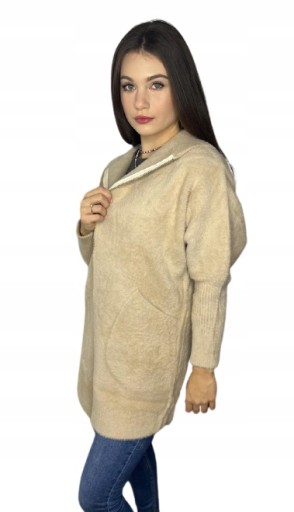 Płaszczyk z Alpaki z kapturem - Beżowy