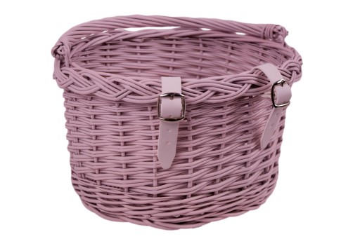 Koszyczek umieszcza się na przedniej części kierownicy za pomocą dwóch pasków, a dzięki wiklinowej rączce można swobodnie zabierać ze sobą.