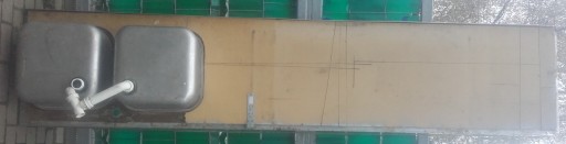 Komory o wymiarze 40x40cm. Wymiar zewnętrzny 61 x 291cm. Na zdjęciach jest przybrudzony, nie umyty, dlatego taka niska cena. Ale nigdzie nie jest poprzecinany , powginany itp. Jest w dobrym stanie. Od spodu wzmocniony płytą, więc kotlety można ubijać, bez obawy że się zdeformuje. Solidna Niemiecka robota.