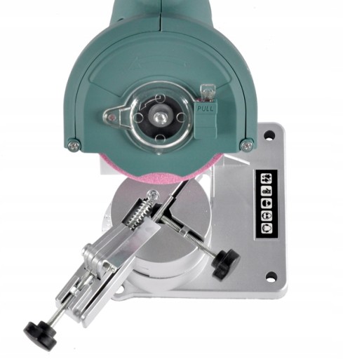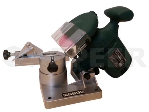 Ostrzałka wyposażona w przechylane imadło umożliwiające ostrzenie łańcuchów pilarek i pił bez konieczności zmiany miejsc zamocowań.