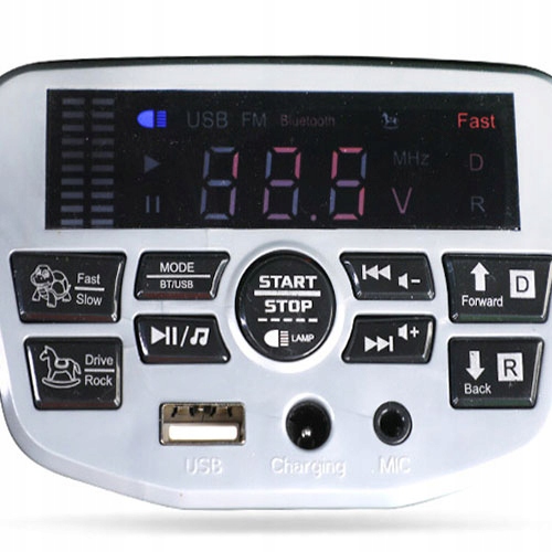 Wbudowany panel posiada również własną playlistę - kilka światowych hitów jest już wgranych i gotowych do odsłuchania w pojeździe. Panel posiada wyświetlacz, który informuje o numerze piosenki.