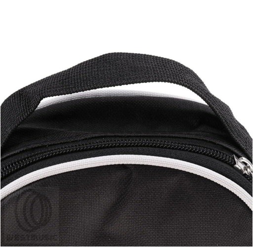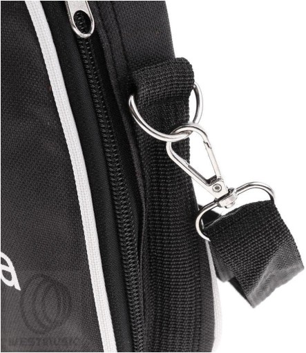 Pokrowiec posiada klasyczny pasek z mocnego nylonu. Solidne sprzączki pozwalają na łatwą regulację ich długości, a karabińczyki pozwalają na jego wypinanie.